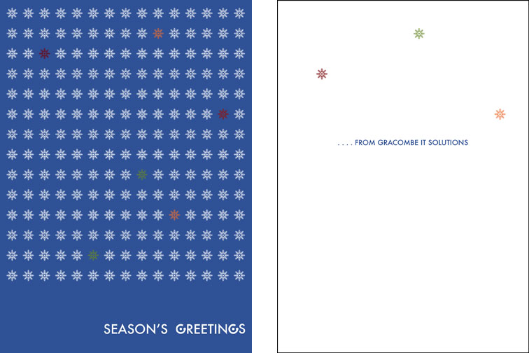 Season's Greetingsholiday card, front and inside, 5" x 7", design for the Boston based IT Solutions corporation