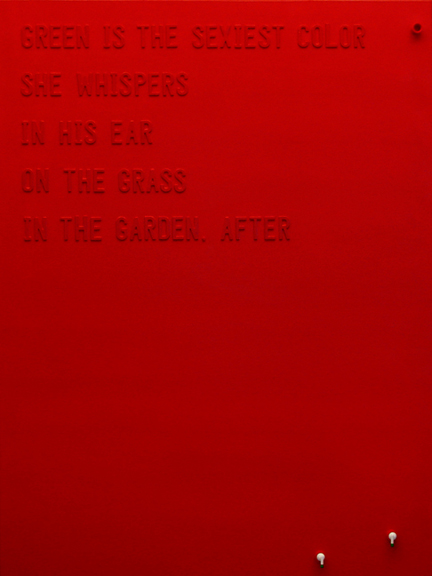 Paradise: The Conversationenamel on canvas, plastic letters, CPVC bushing, Apple iPod earbuds, 36" x 48"