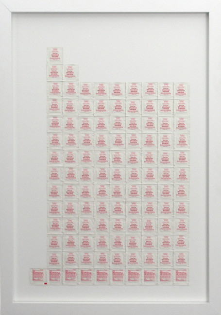 painted wood, alcohol swabs, 2" x 26" x 37"