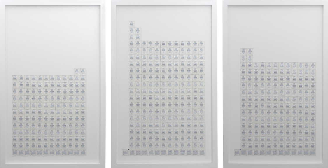 The Three Visitors (The Plains Of Mamre), Triptychpainted wood, alcohol swabs, each panel 2" x 31" x 49"
